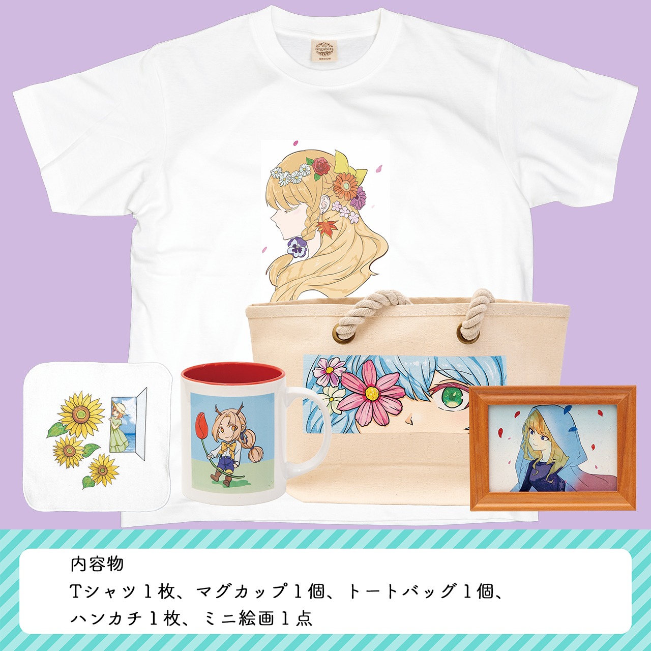 作家一人ひとりが自らテーマを決めて描いたアート作品を、Tシャツ、マグカップ、トートバッグ、ハンカチ、そして額入りミニ絵画に仕立てました。
