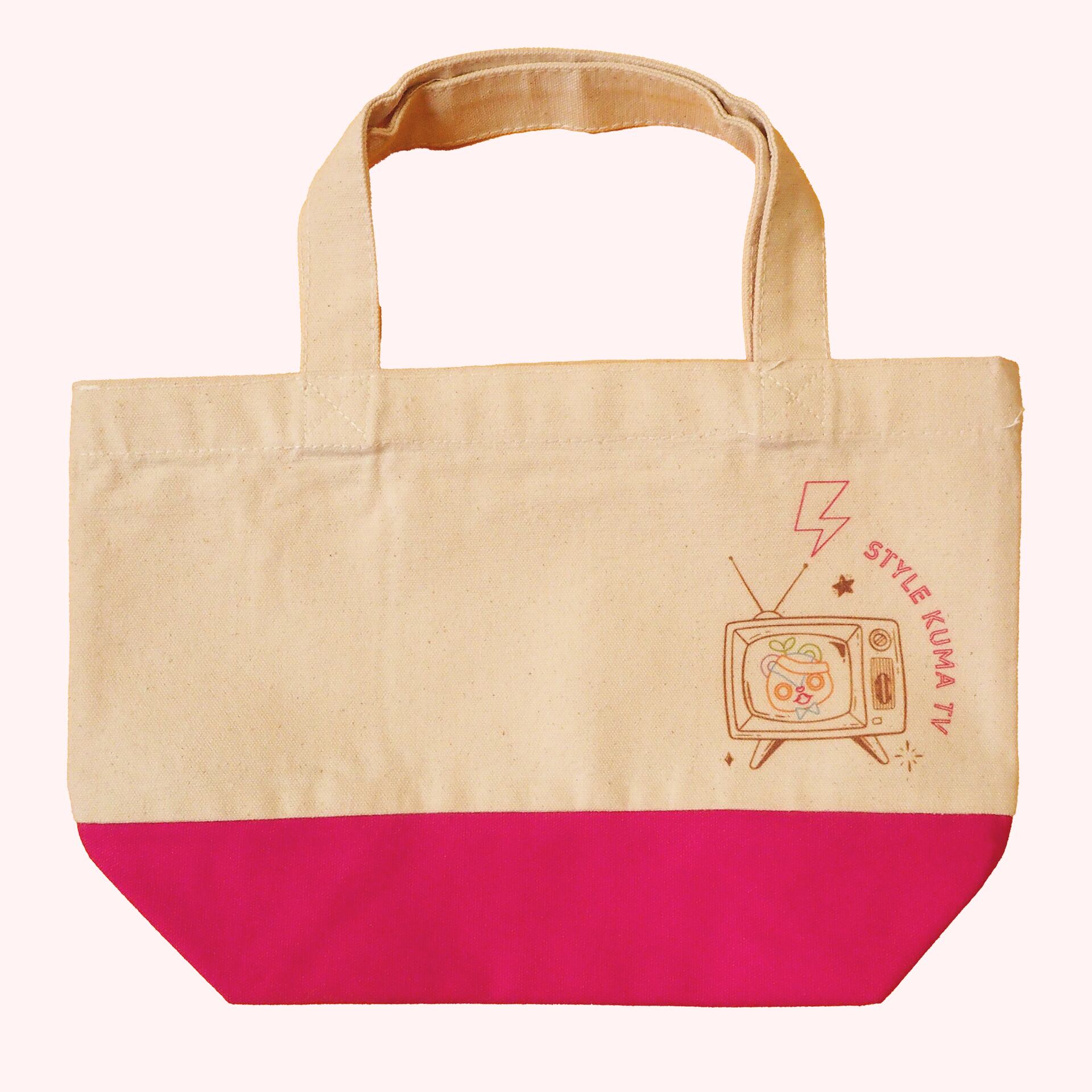 コンパクトなツートンカラーのトートバッグに可愛いイラストをプリントしました。